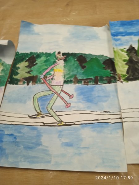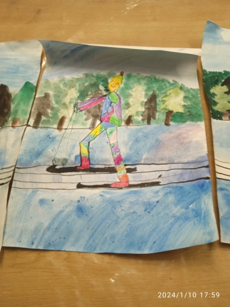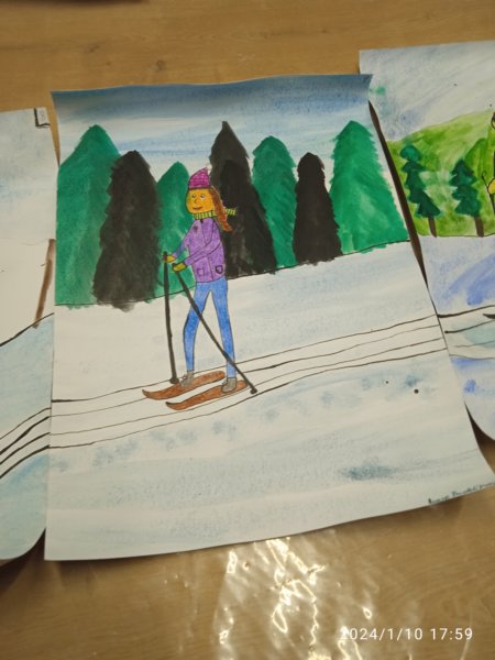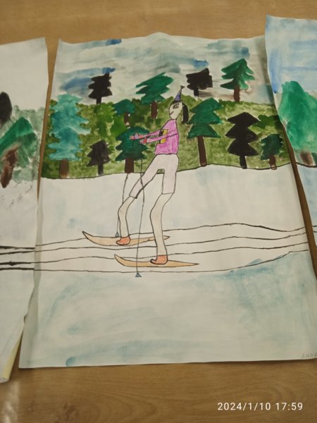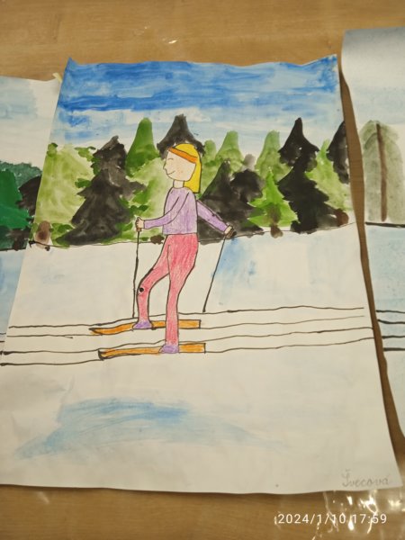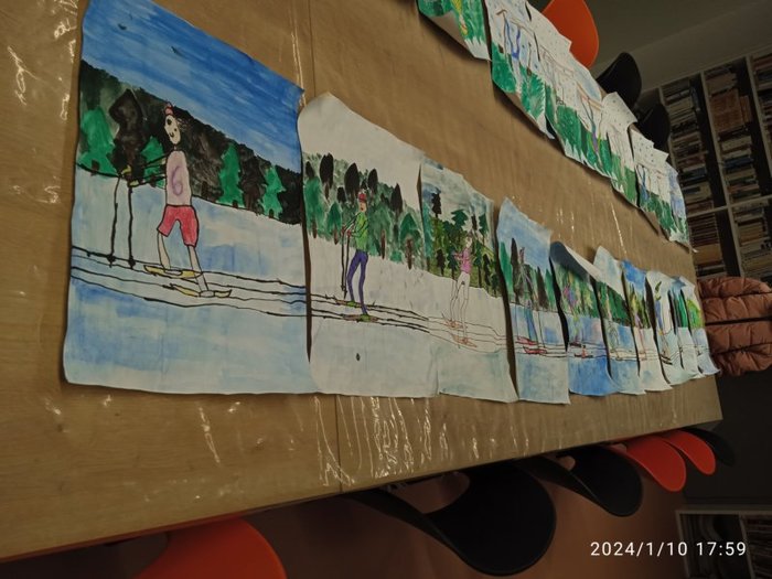 Úvod > Fotogalerie > Starší žáci naší ZUŠ namalovali závodníky v lyžařské stopě 2024