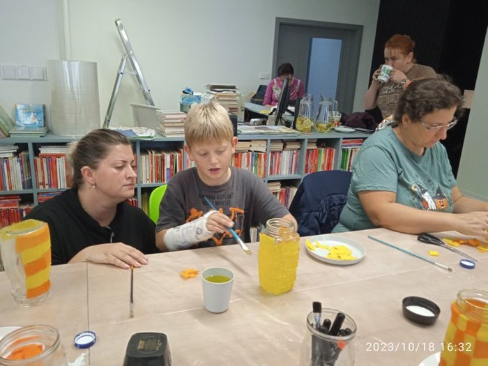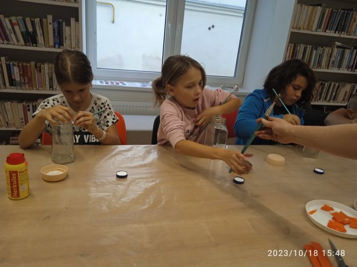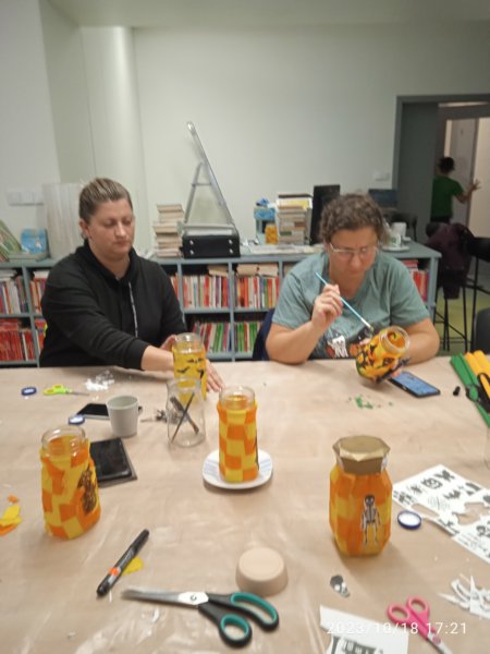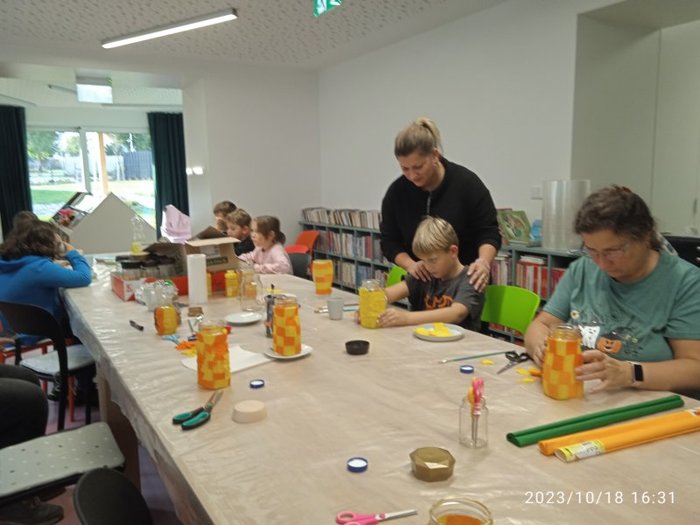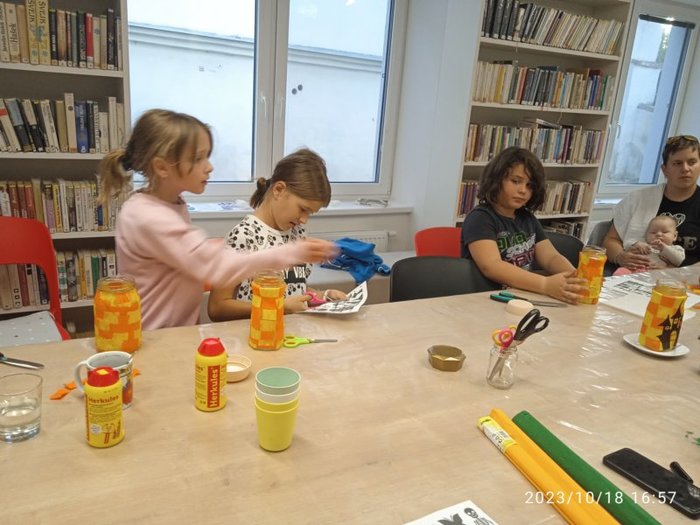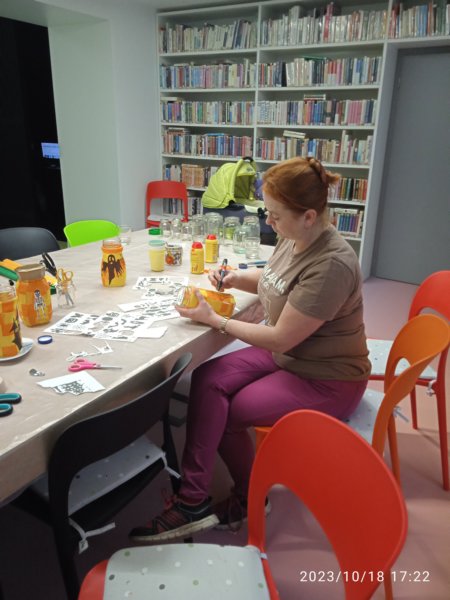 Úvod > Fotogalerie > Tvoření v knihovně se Zuzankou Śtroblíkovou - Halloweenské lampičky 2023